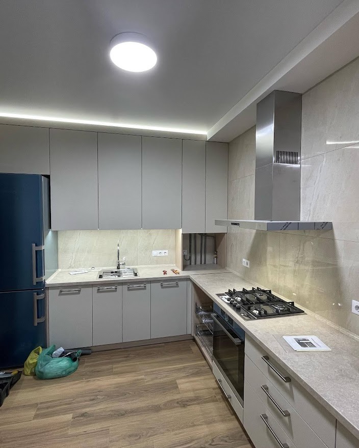 Функціональна кухня k-0038Від Valia / 3 Серпня, 2023 Кожен шкаф, полиця та стільниця цієї кухні були ретельно продумані, забезпечуючи максимальну зручність та функціональність використання простору. Тип кухні:Кутова (г-подібна)Матеріал фасадів: МДФ фарбованийМатеріал корпусу:ЛДСПКолір:БежевийФурнітура:HaffeleСтільниця:Ламінована постформінгКолір стільниці:БежевийСтиль:сучасний Хочу таке!
