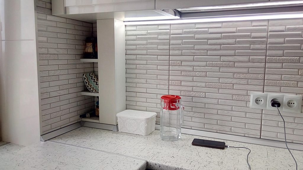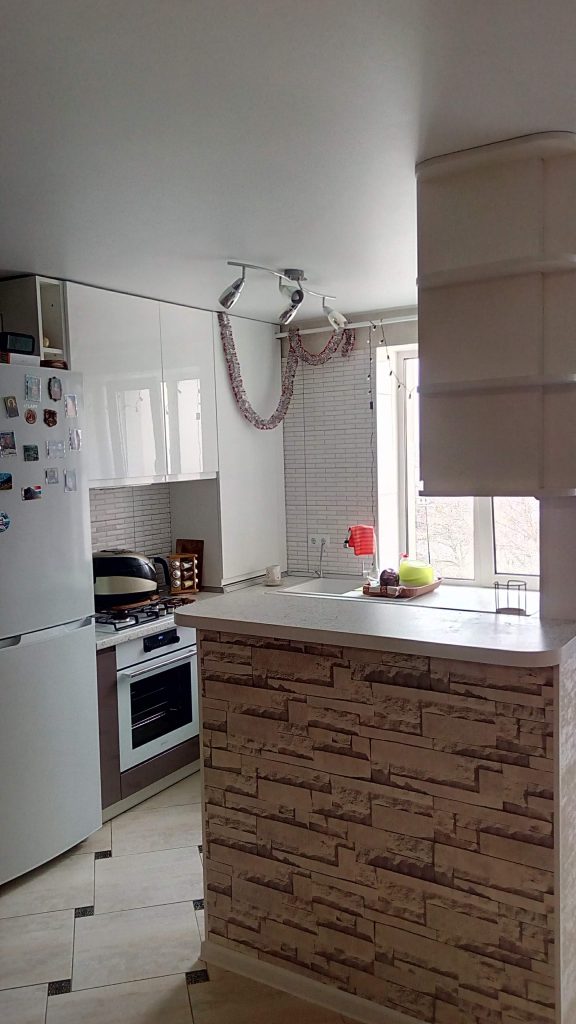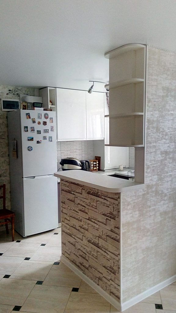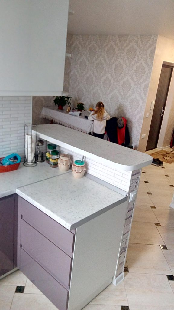 Напівострівна кухня включає центральний острів, який може виконувати роль робочої поверхні, додаткового сидіння або зони для приготування їжі. У комплектацію кухні можуть входити вбудовані шафки, ящики та полиці для зберігання посуду, кухонних приладів та інших предметів. Кухня доповнена різними аксесуарами, такими як підсвітка, витяжка, вбудовані електроприлади тощо, що забезпечує комфорт та функціональність у повсякденному використанні кухні.
