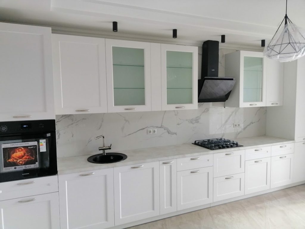 Кухня зі скляними дверцятами k-0041Від Valia / 3 Серпня, 2023 Ми докладали зусиль, щоб створити кухню, яка максимально використовує простір, забезпечуючи зручний доступ до всіх необхідних зон та зберігання. Тип кухні:Пряма (однорядна)Матеріал фасадів: МДФ фарбованийСклоМатеріал корпусу:ЛДСПКолір:БілийФурнітура:BlumСтільниця:Ламінована постформінгКолір стільниці:БілийСтиль:сучасний Хочу таке!