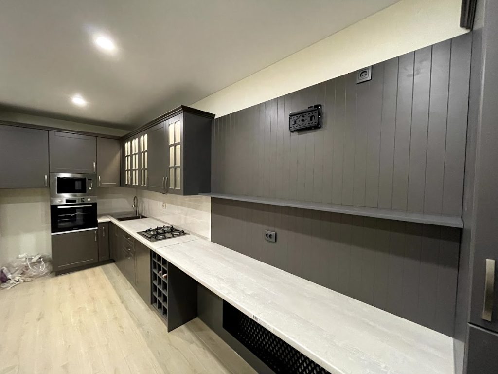 Темно-сіра кухня на замовлення k-0044Від Valia / 3 Серпня, 2023 Наша команда майстрів та дизайнерів створила цю кухню, враховуючи індивідуальні побажання та потреби клієнта. Кожен елемент кухні був виготовлений з увагою до деталей, щоб забезпечити унікальний та стильний результат. Тип кухні:Кутова (г-подібна)Матеріал фасадів: МДФ фарбованийМатеріал корпусу:ЛДСПКолір:Темно-сірийФурнітура:HettichСтільниця:Ламінована постформінгКолір стільниці:БілийСтиль:Лофт Хочу таке!